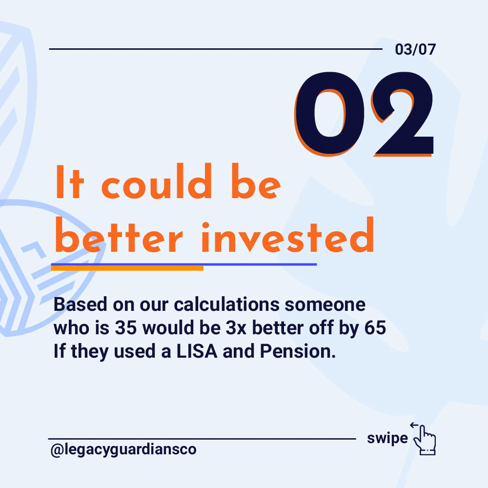 Based on our calculations someone who is 35 would be 3x better off by 65 if they used a LISA and Pension.