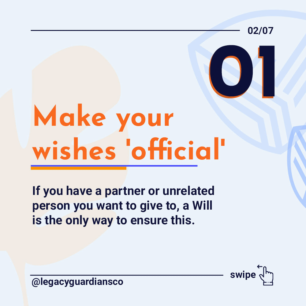 If you have a partner or unrelated person you want to give to, a Will is the only way to ensure this.