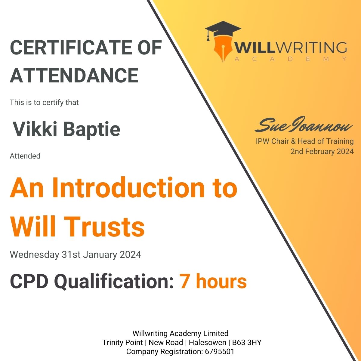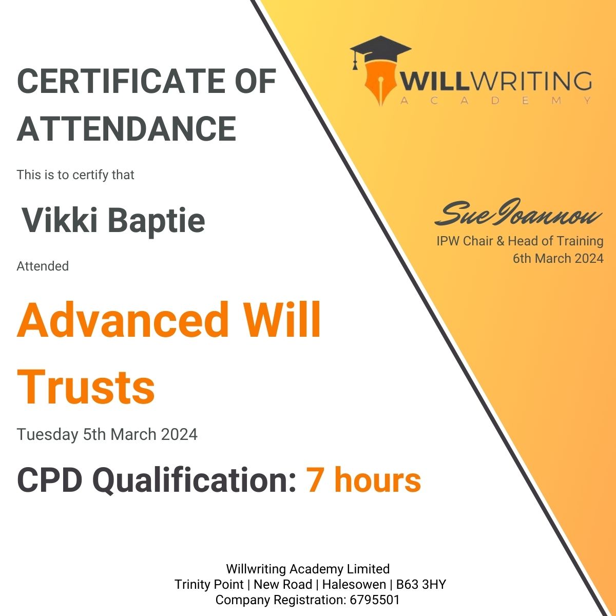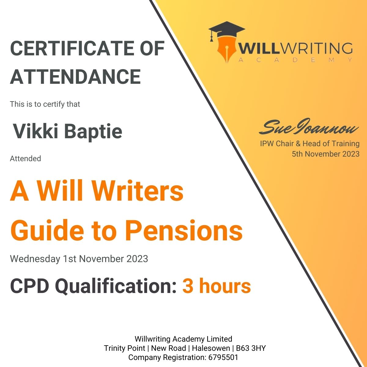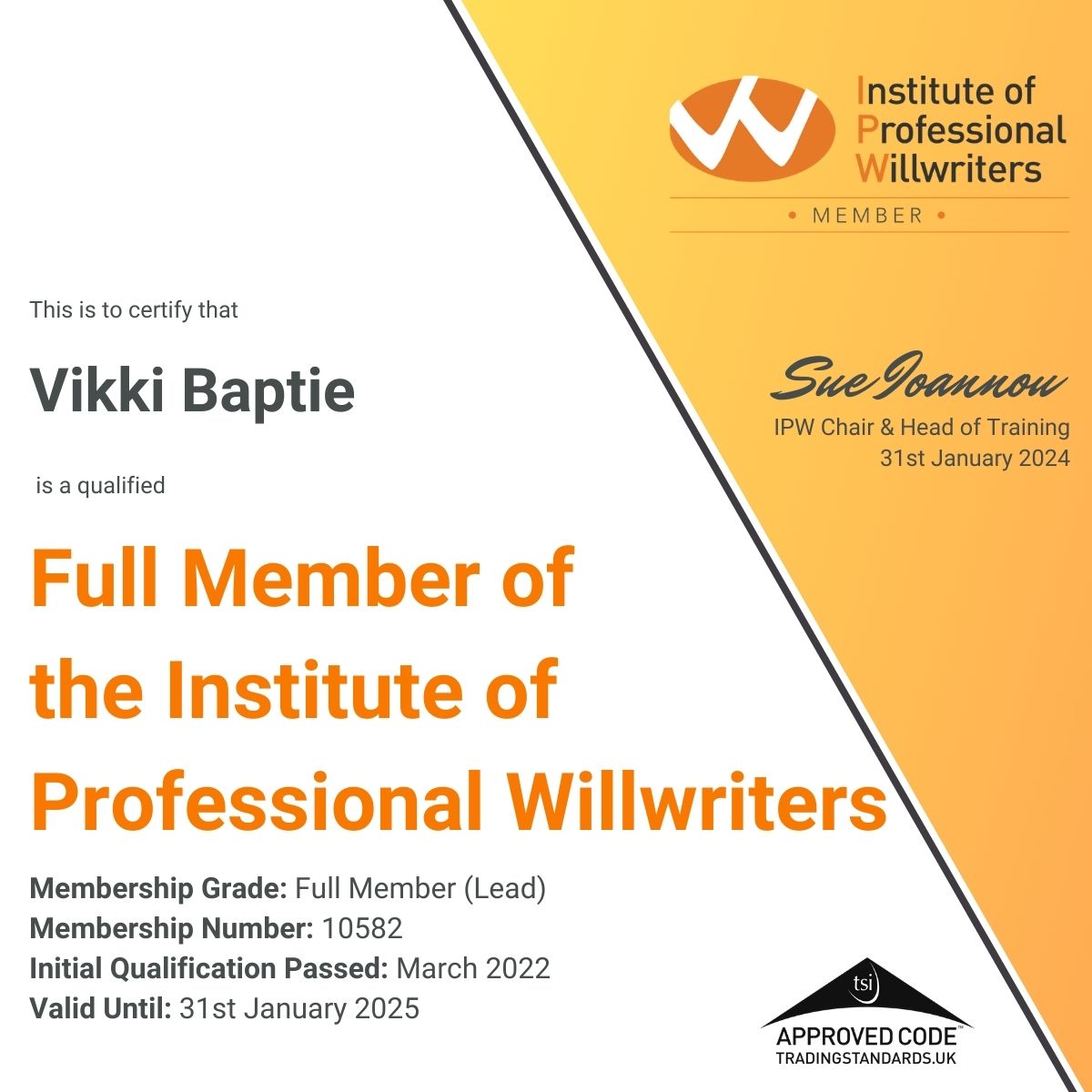 As a full member of the Institute of Professional Will Writers Vikki has completed the following: