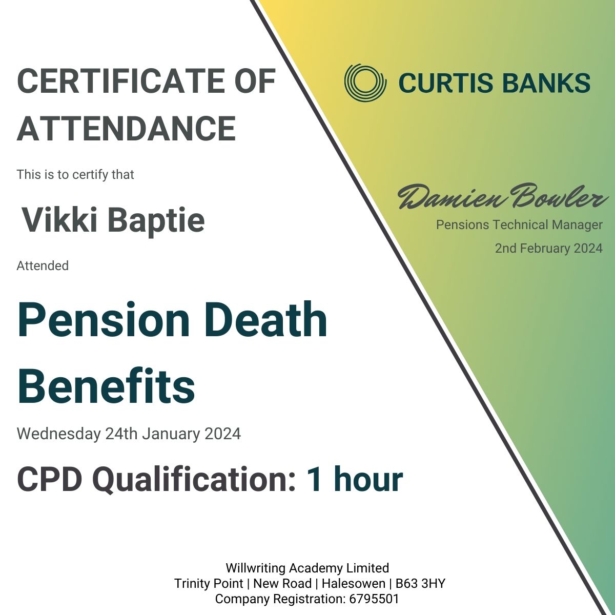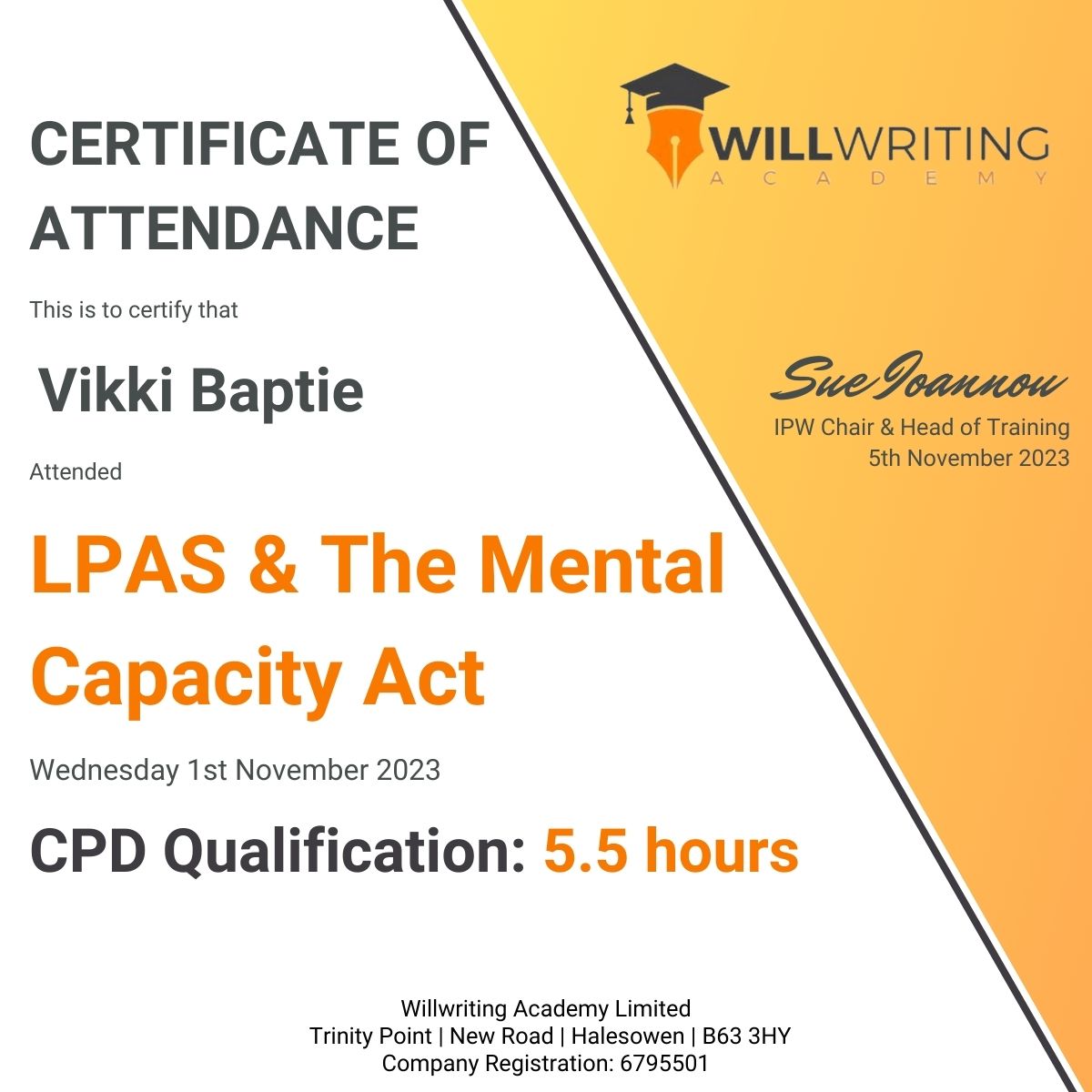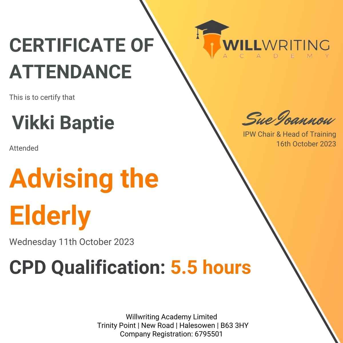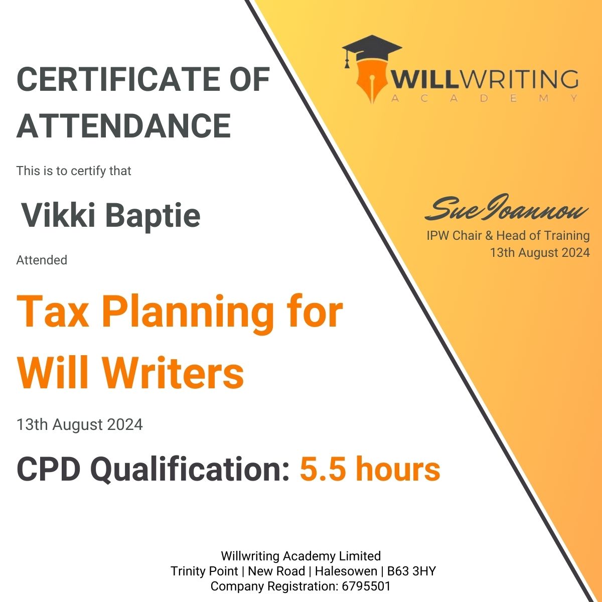 As a full member of the Institute of Professional Will Writers Vikki has completed the following: