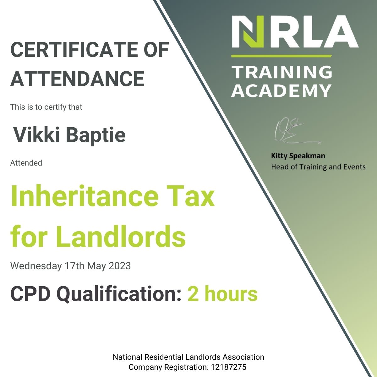 With this qualification you can rest assured that you are treating your Property Portfolio as a business and covering all legal obligations.